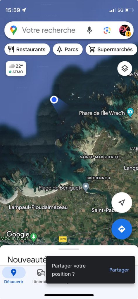9 juillet : après avoir navigué une grande partie de la journée dans la grisaille, le beau temps est revenu en fin d’après-midi. Escale à l’Aber Wrac’h, fief du Bel Espoir et de l’association AJD. Les conditions de mer sont trop fortes pour contourner le Finistère Nord. Pierre Lehuby décide de retourner à l’Aber Wrac’h.
