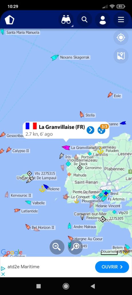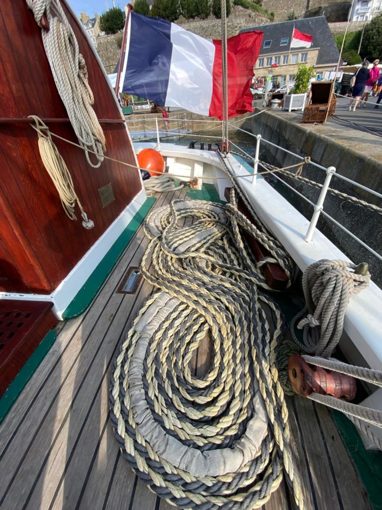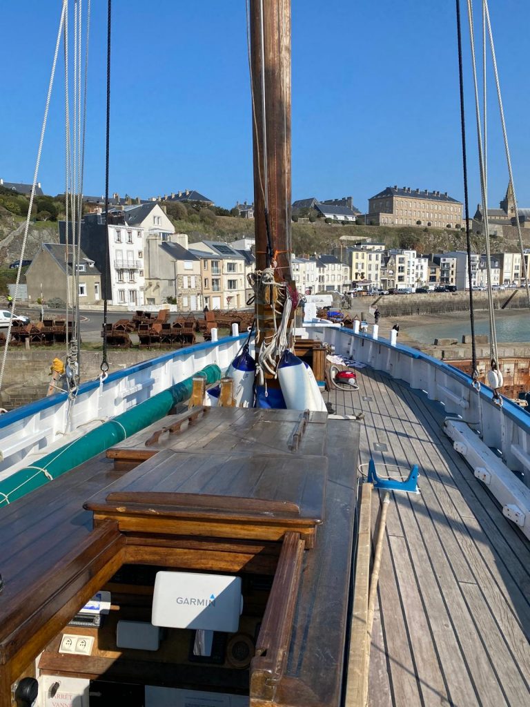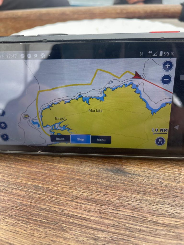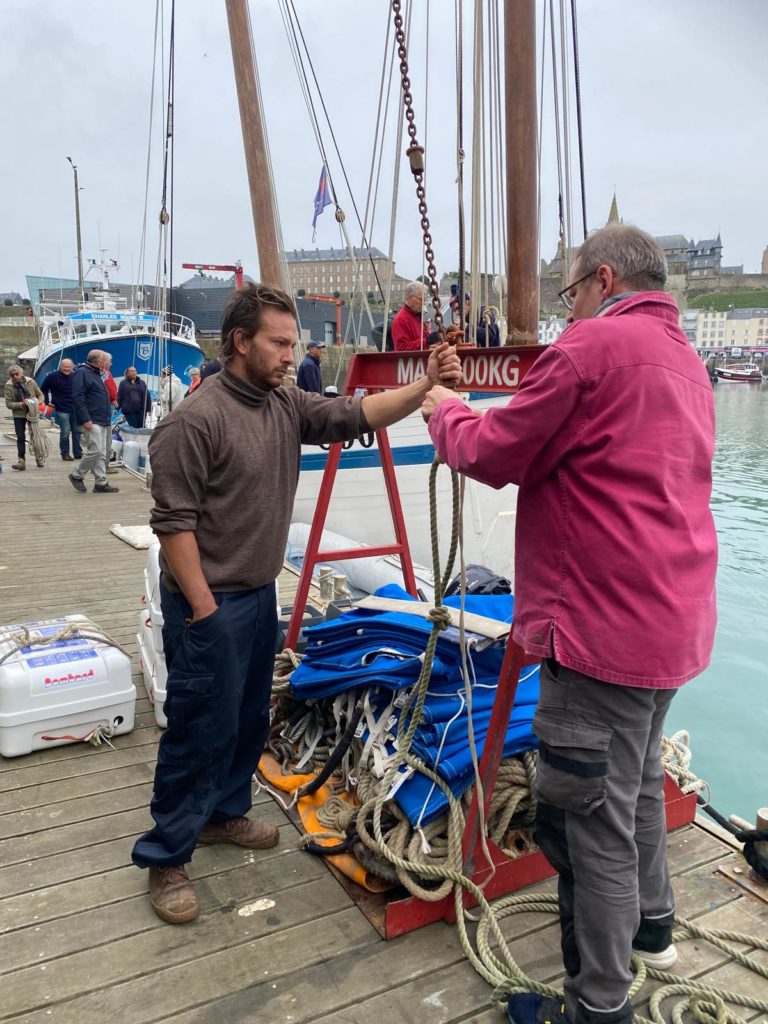 Depuis Granville, nous signalons que l’AIS ne fonctionne pas. L’équipage réussit à le refaire fonctionner. Vous pouvez donc suivre l’évolution de la bisquine sur les applications spécialisées (qui en général bénéficient d’une version light gratuite).