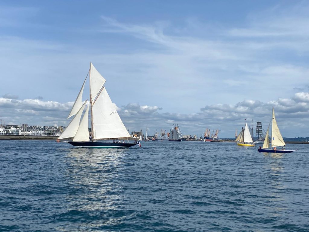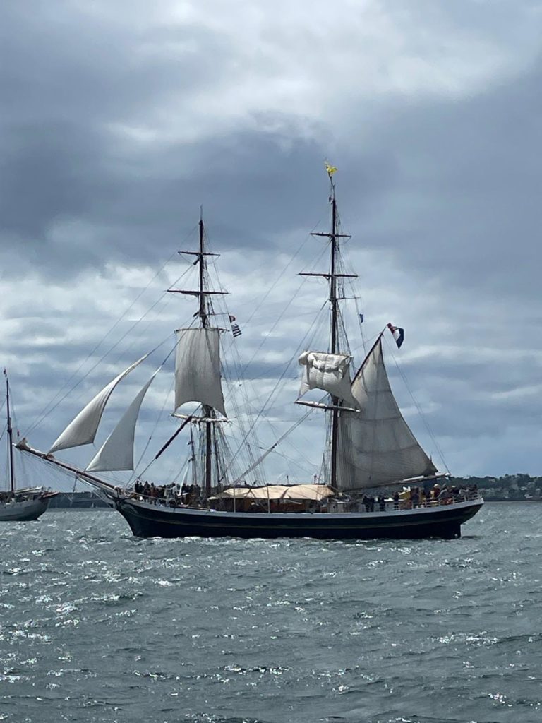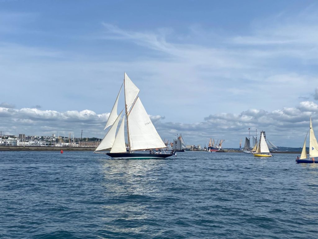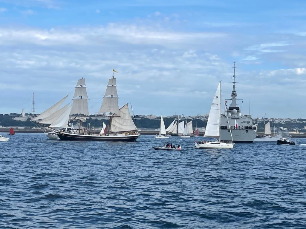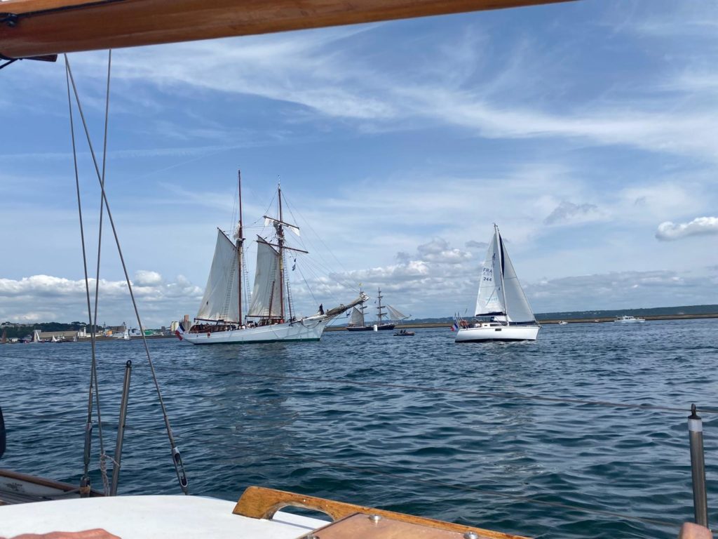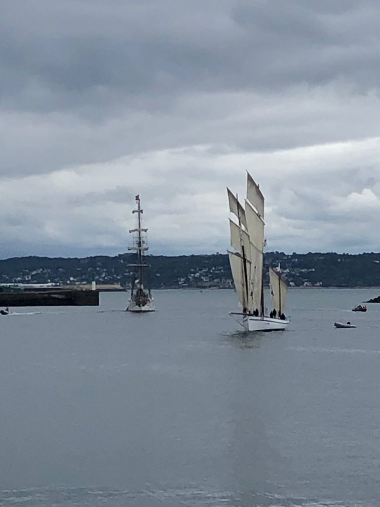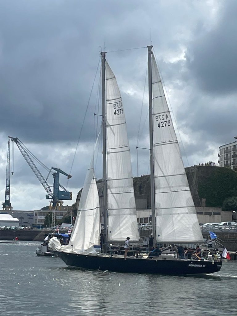 10 juillet : nouveau départ vers 8H15 vers Brest par temps calme, presque mer d’huile au départ. Ensuite, les conditions permettront d’envoyer toute la toile sur 3 étages. Magnifique entrée dans la rade de Brest.
