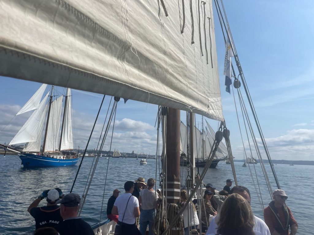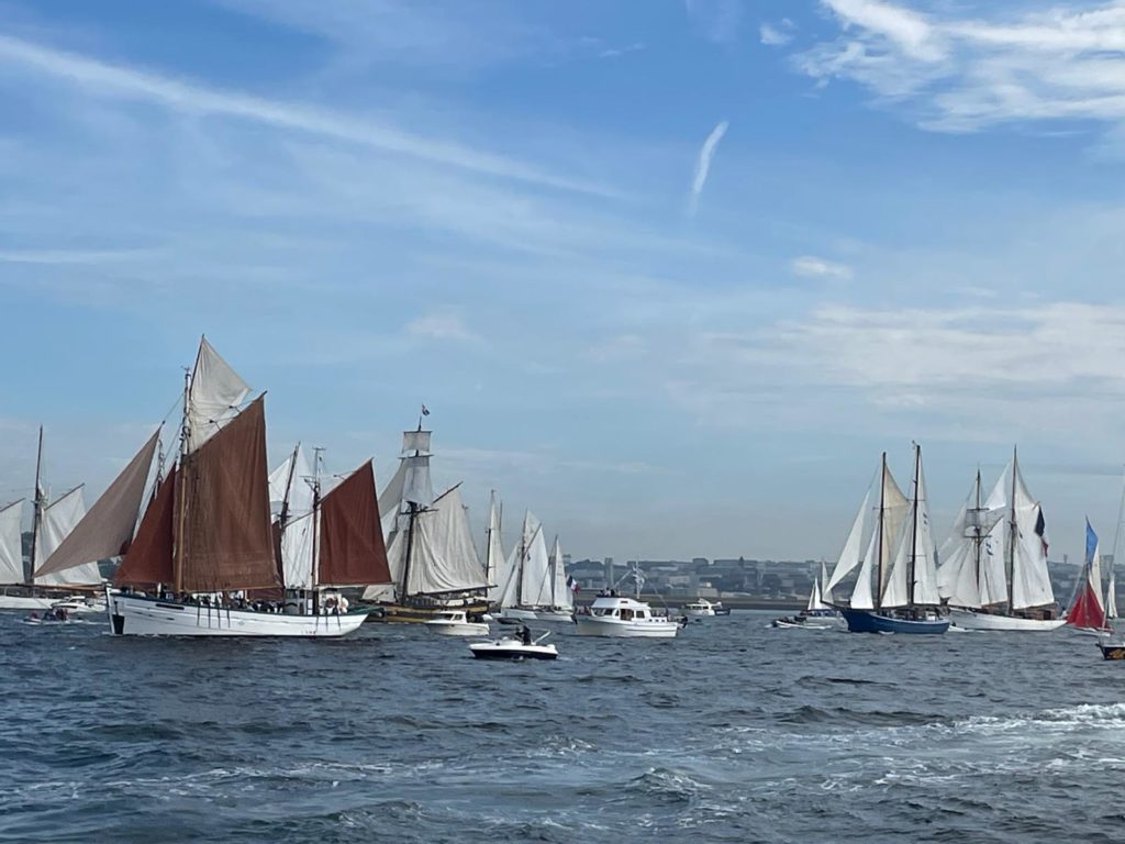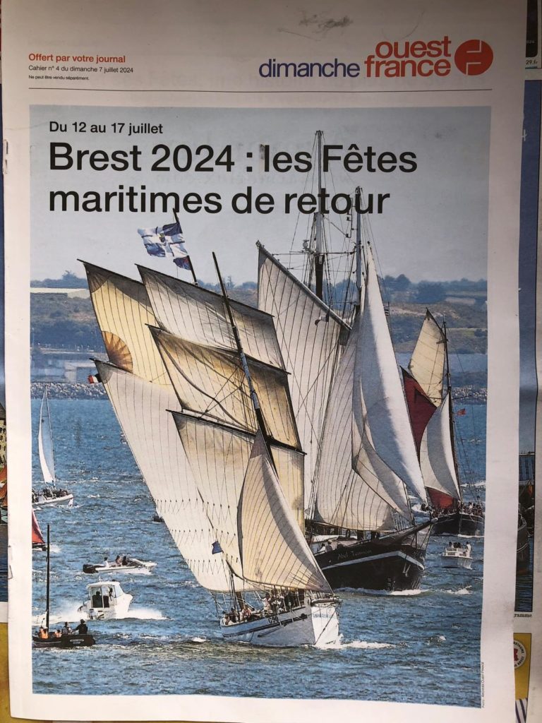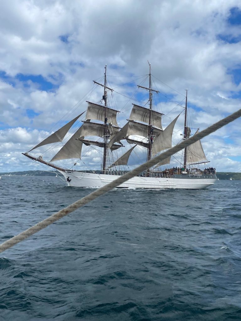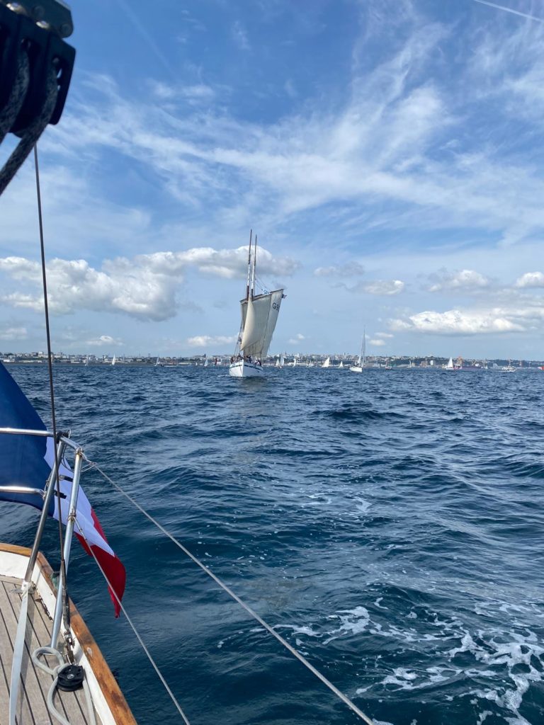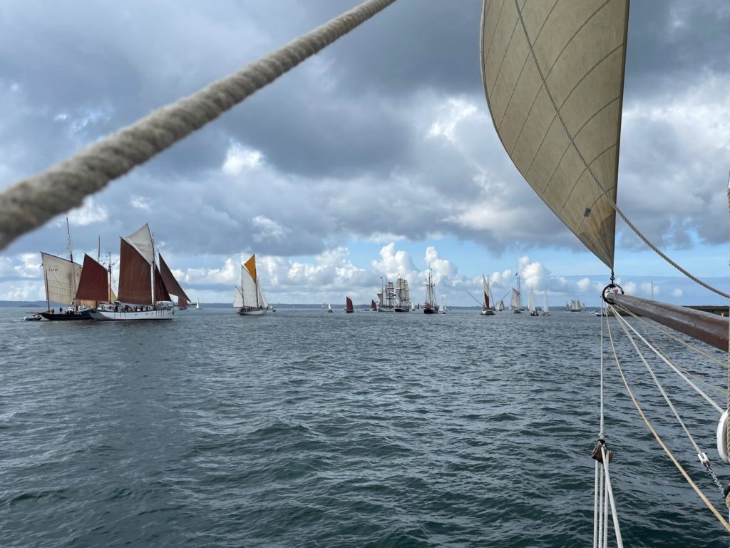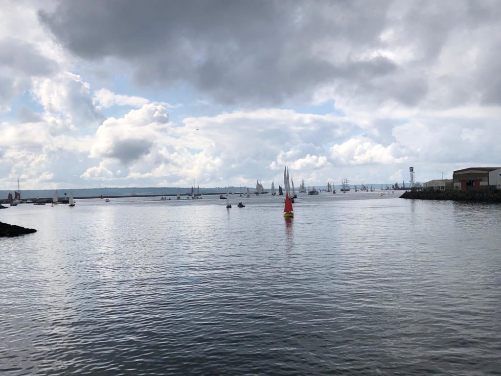 10 juillet : nouveau départ vers 8H15 vers Brest par temps calme, presque mer d’huile au départ. Ensuite, les conditions permettront d’envoyer toute la toile sur 3 étages. Magnifique entrée dans la rade de Brest.