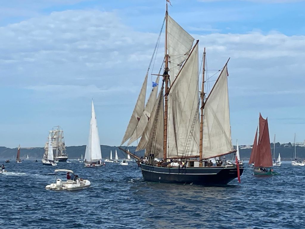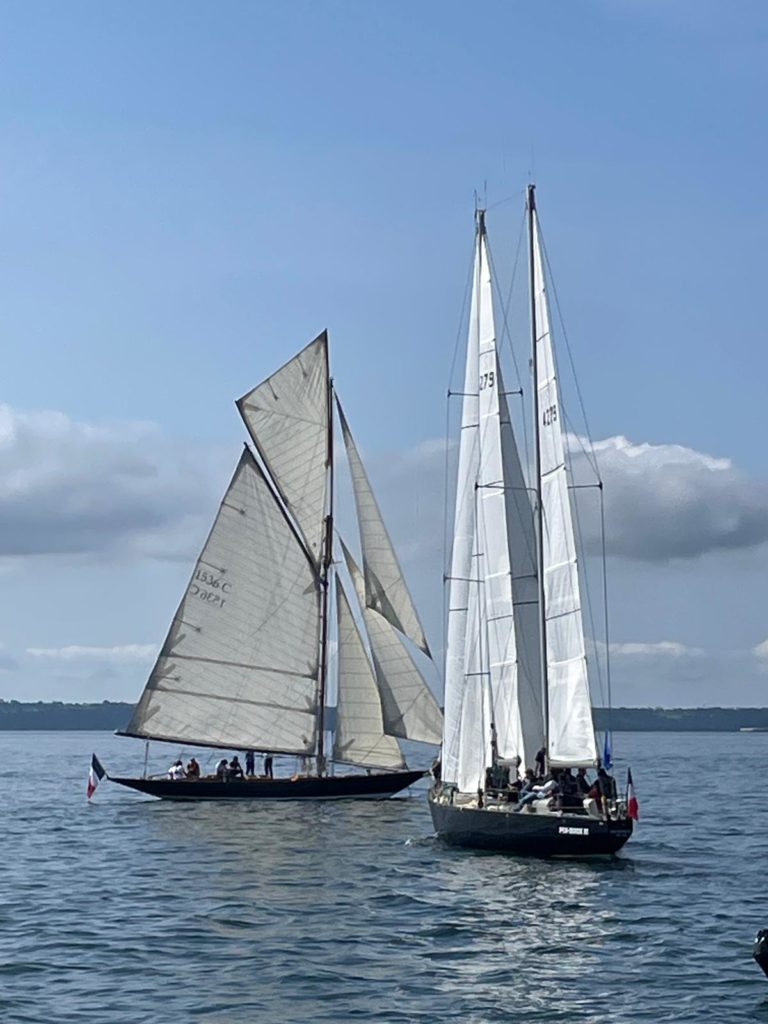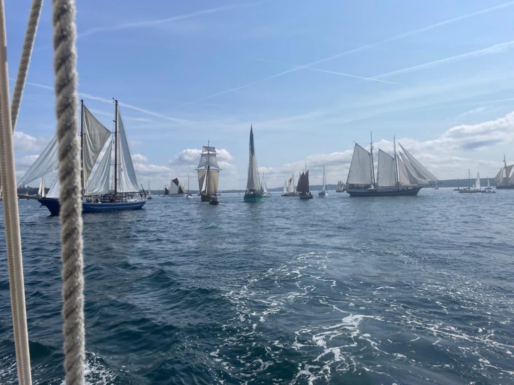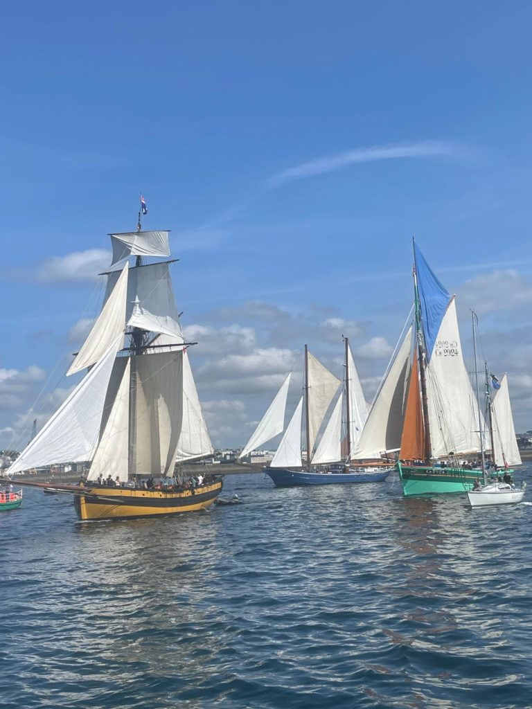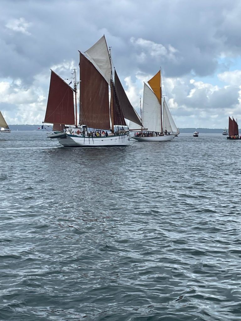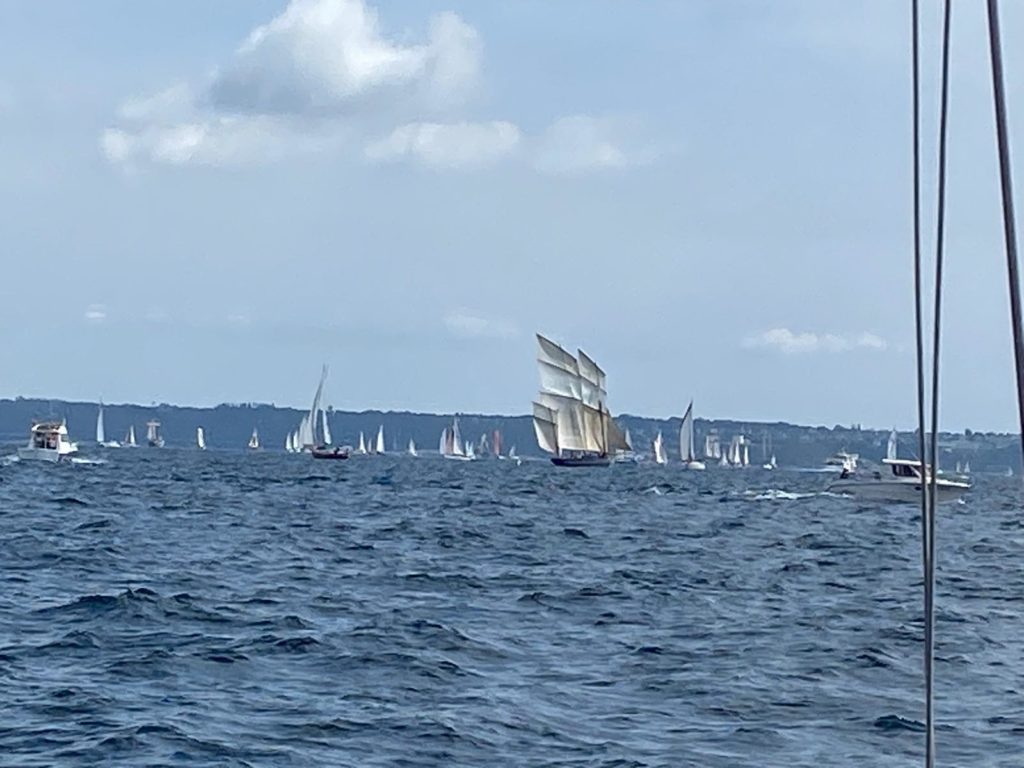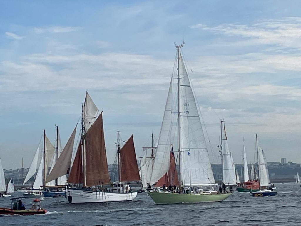 10 juillet : nouveau départ vers 8H15 vers Brest par temps calme, presque mer d’huile au départ. Ensuite, les conditions permettront d’envoyer toute la toile sur 3 étages. Magnifique entrée dans la rade de Brest.