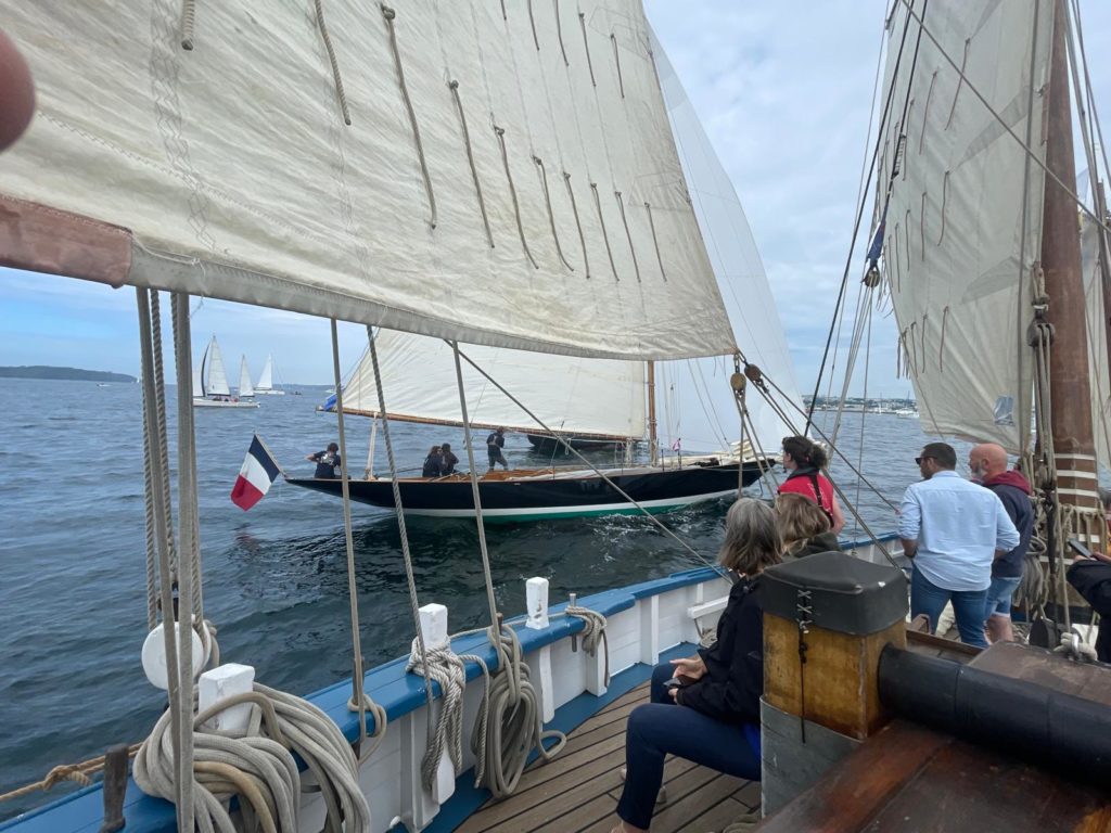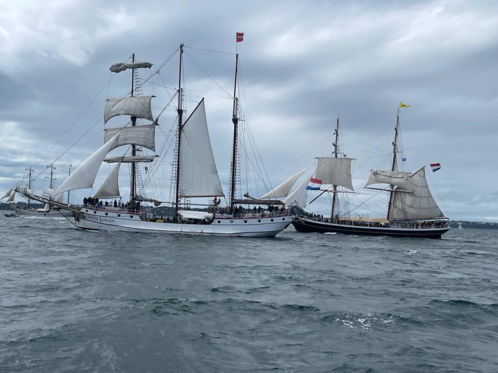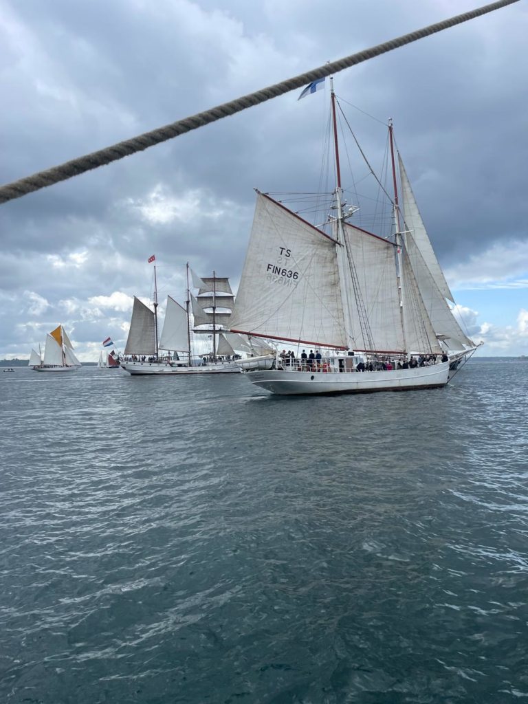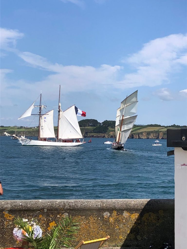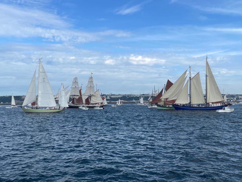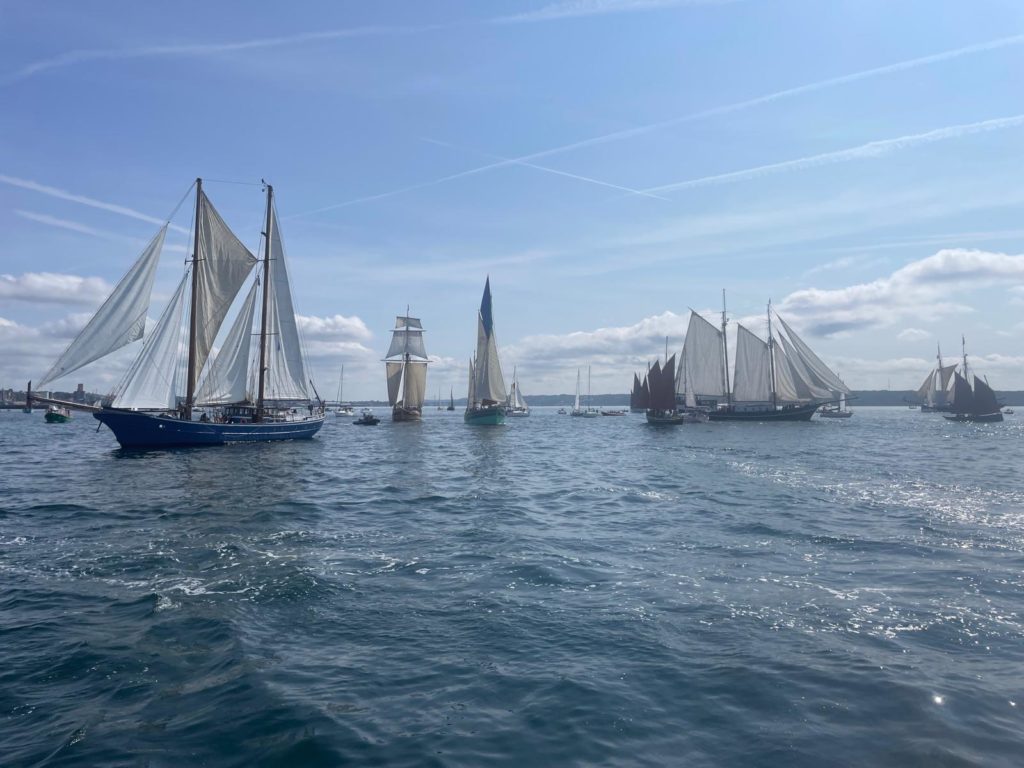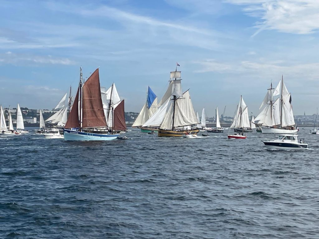 10 juillet : nouveau départ vers 8H15 vers Brest par temps calme, presque mer d’huile au départ. Ensuite, les conditions permettront d’envoyer toute la toile sur 3 étages. Magnifique entrée dans la rade de Brest.