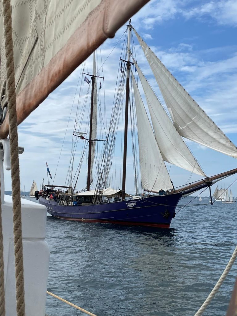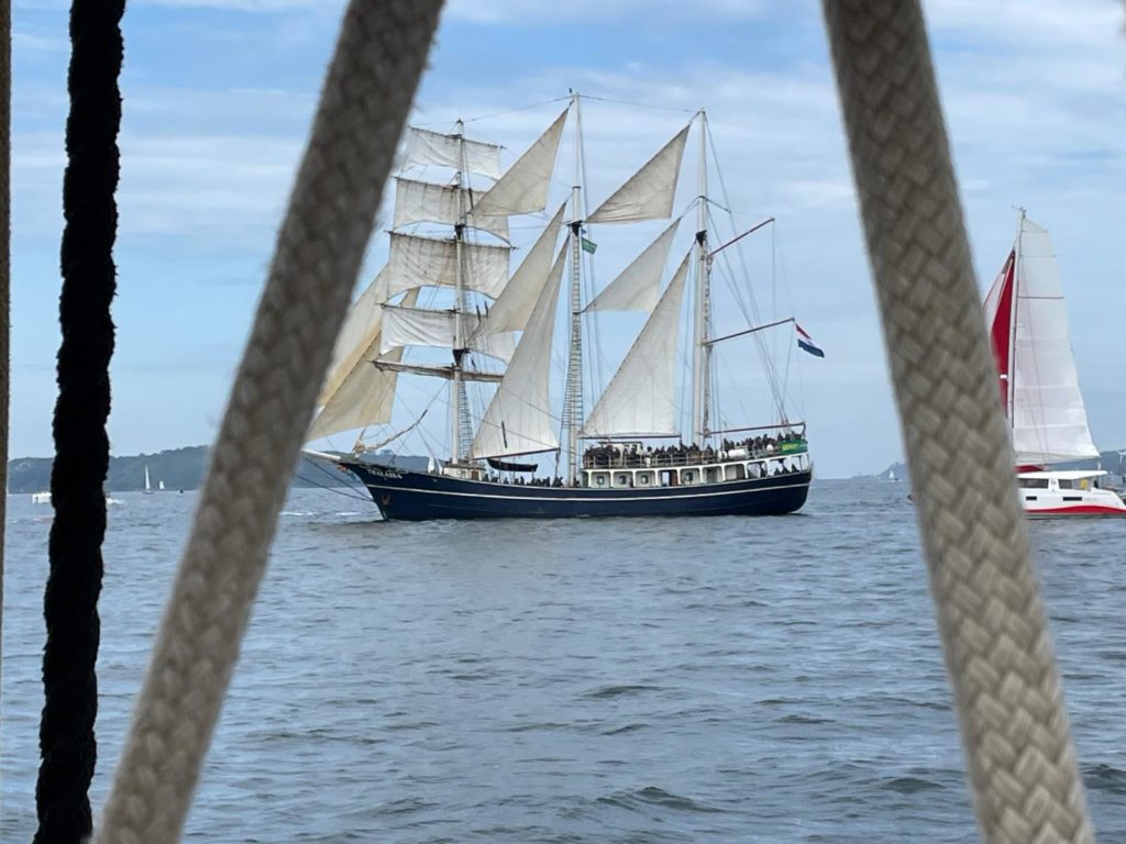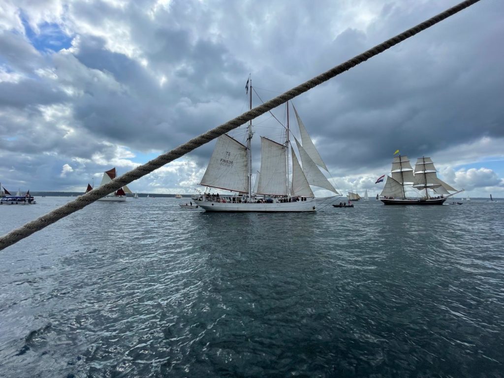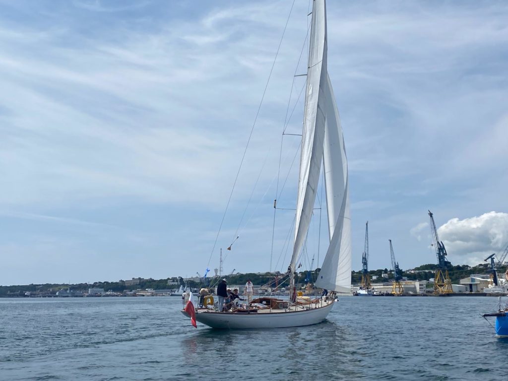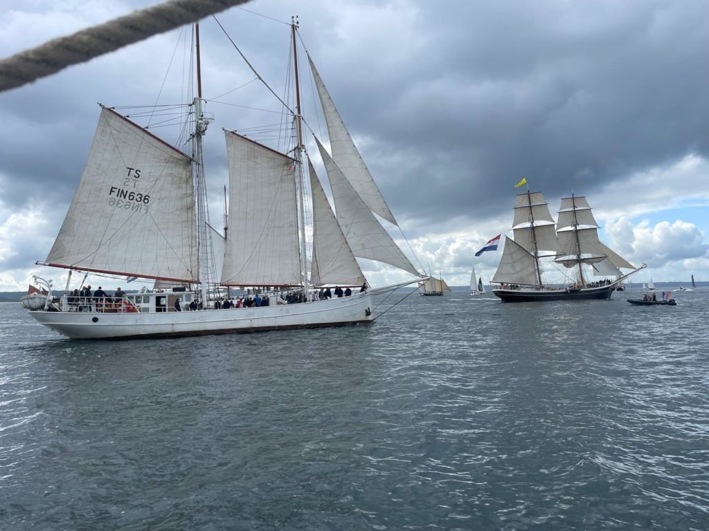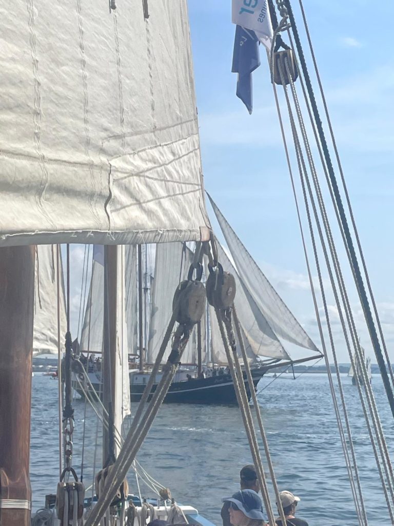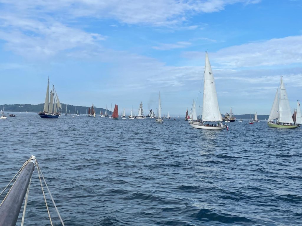 10 juillet : nouveau départ vers 8H15 vers Brest par temps calme, presque mer d’huile au départ. Ensuite, les conditions permettront d’envoyer toute la toile sur 3 étages. Magnifique entrée dans la rade de Brest.