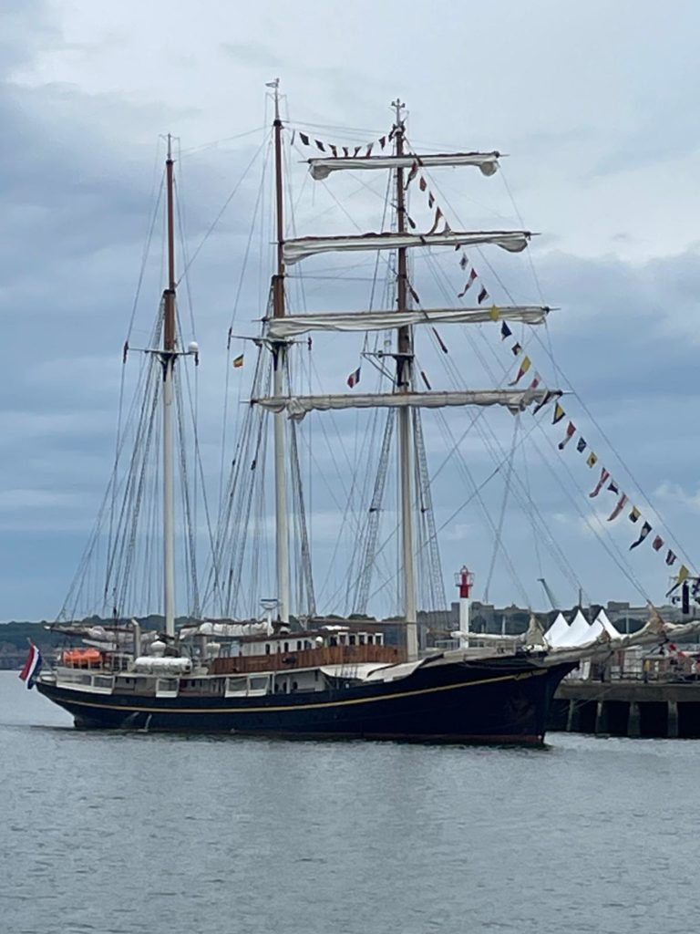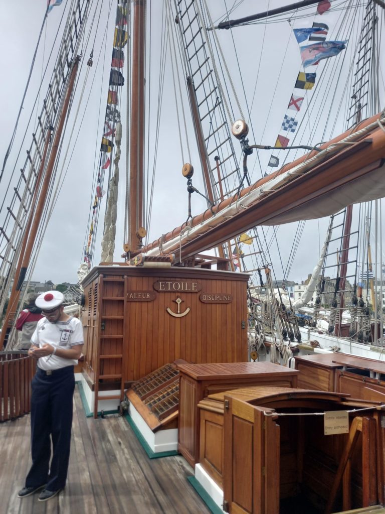 La Granvillaise ne naviguait pas aujourd’hui. On flane sur les quais et on en prend plein les yeux. Visites guidées à quai et belle rencontre avec Miss Armorique 2024…