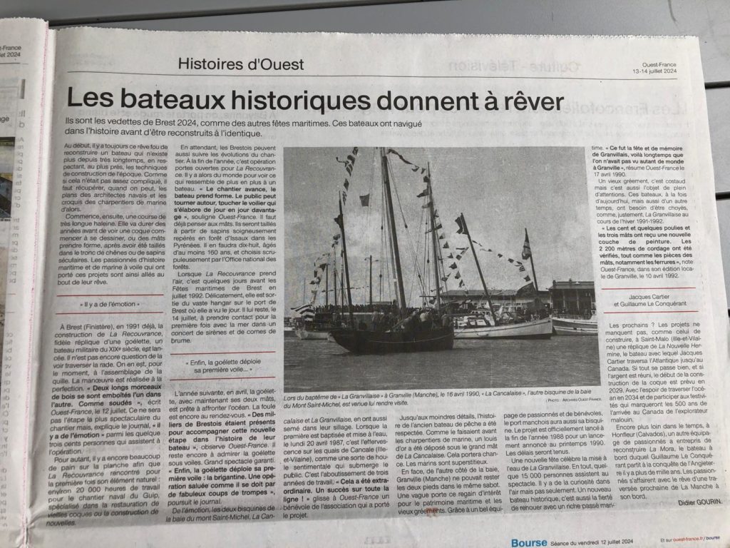 La Granvillaise participe à ce très bel événement et c’est la raison pour laquelle les Granvillais ne verront pas la Bisquine La Granvillaise du 8 au 24 juillet.