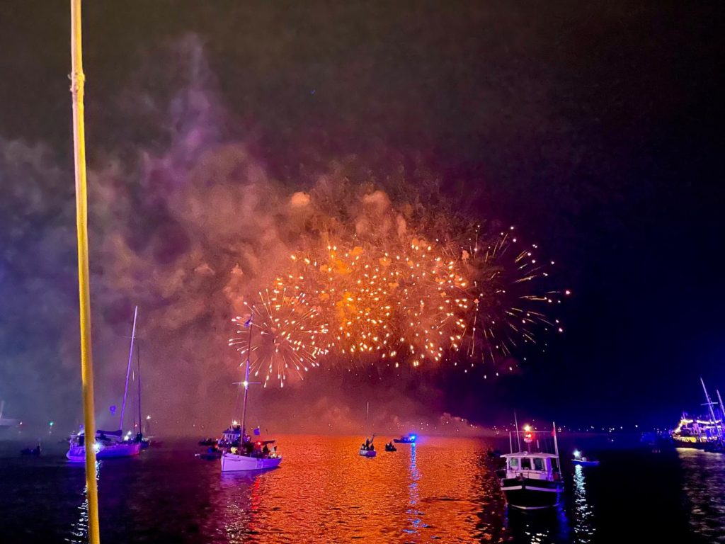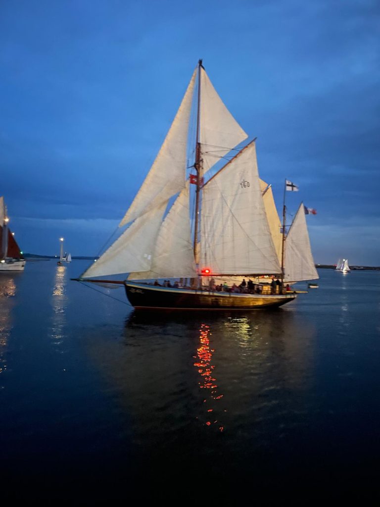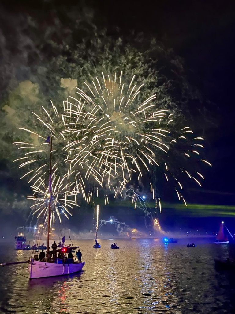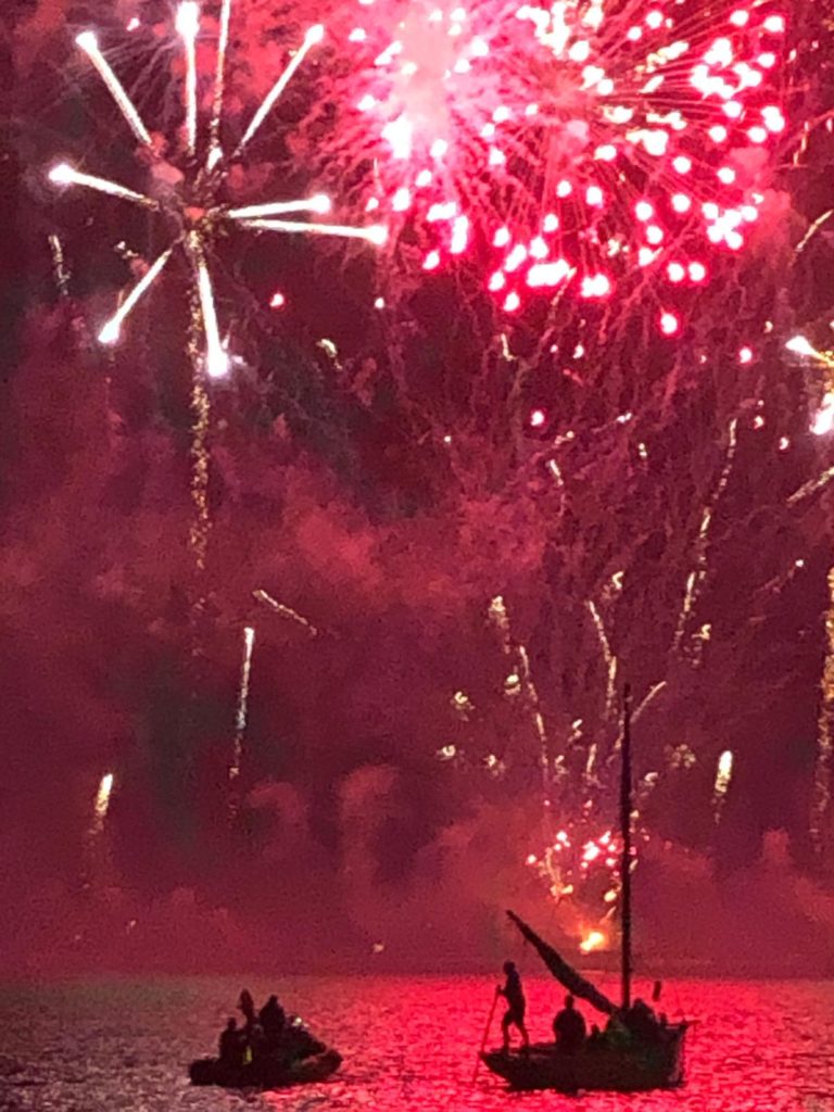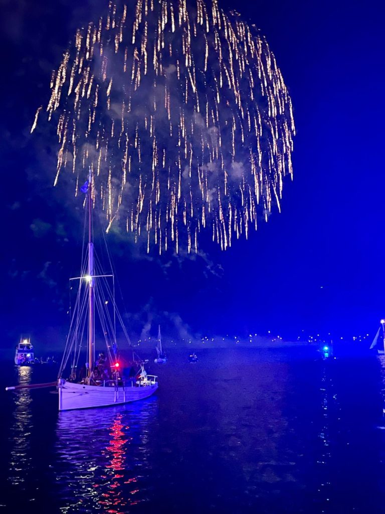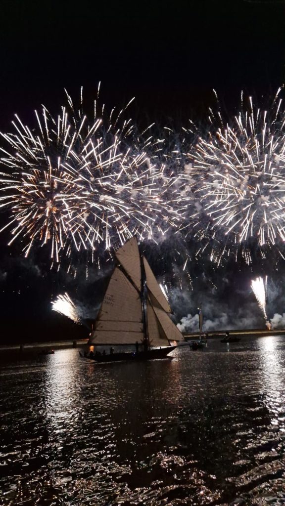 La journée se conclut par le feu d’artifices traditionnel somptueux que nous admirons du bord de notre belle Bisquine.