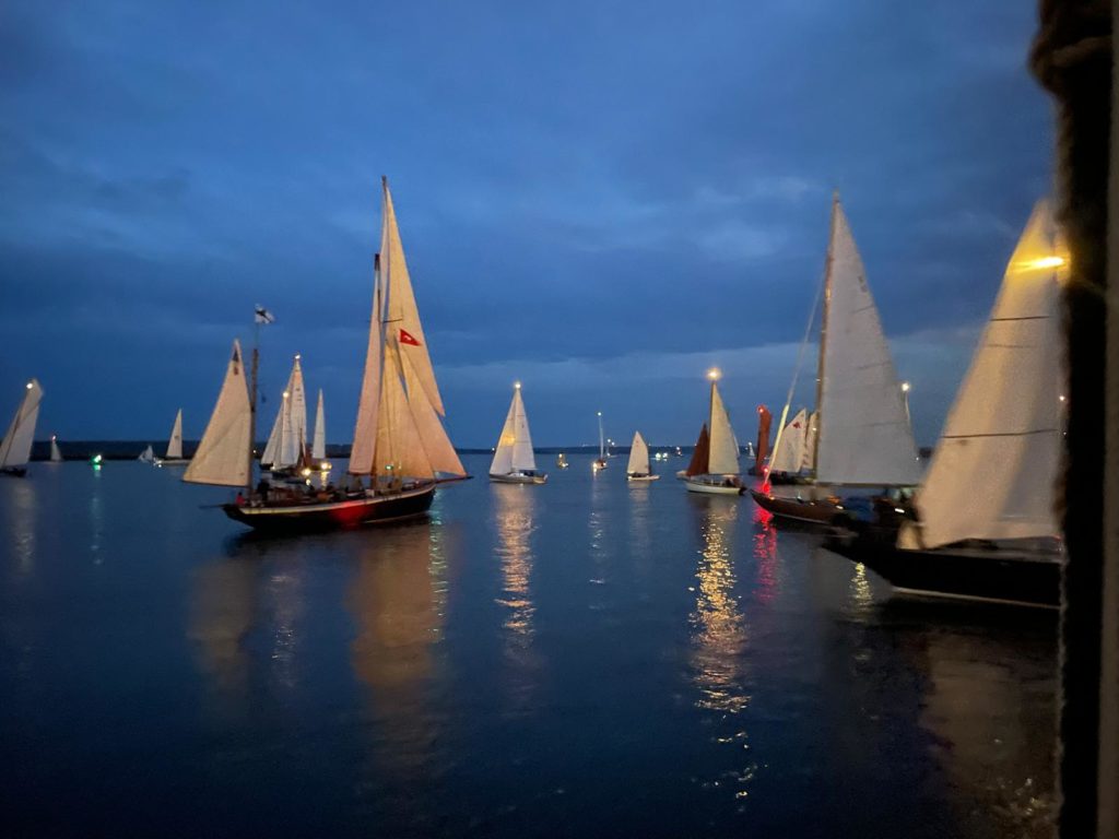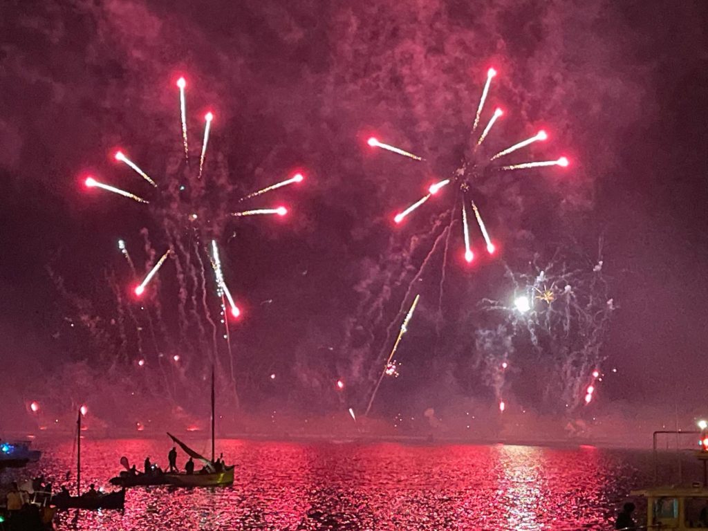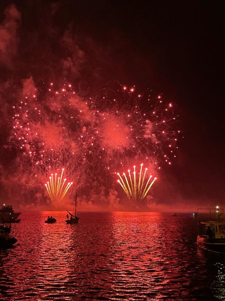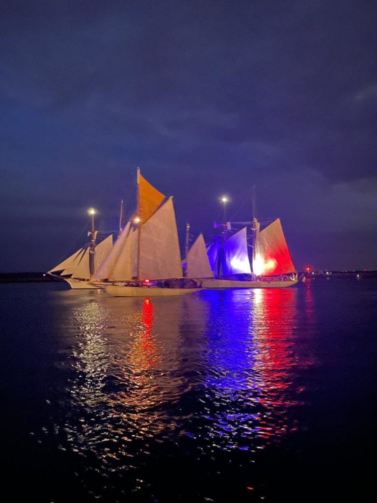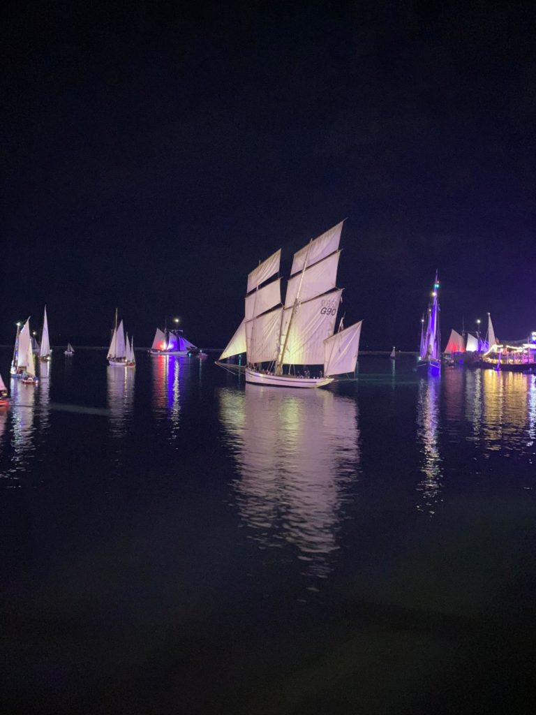 La journée se conclut par le feu d’artifices traditionnel somptueux que nous admirons du bord de notre belle Bisquine.