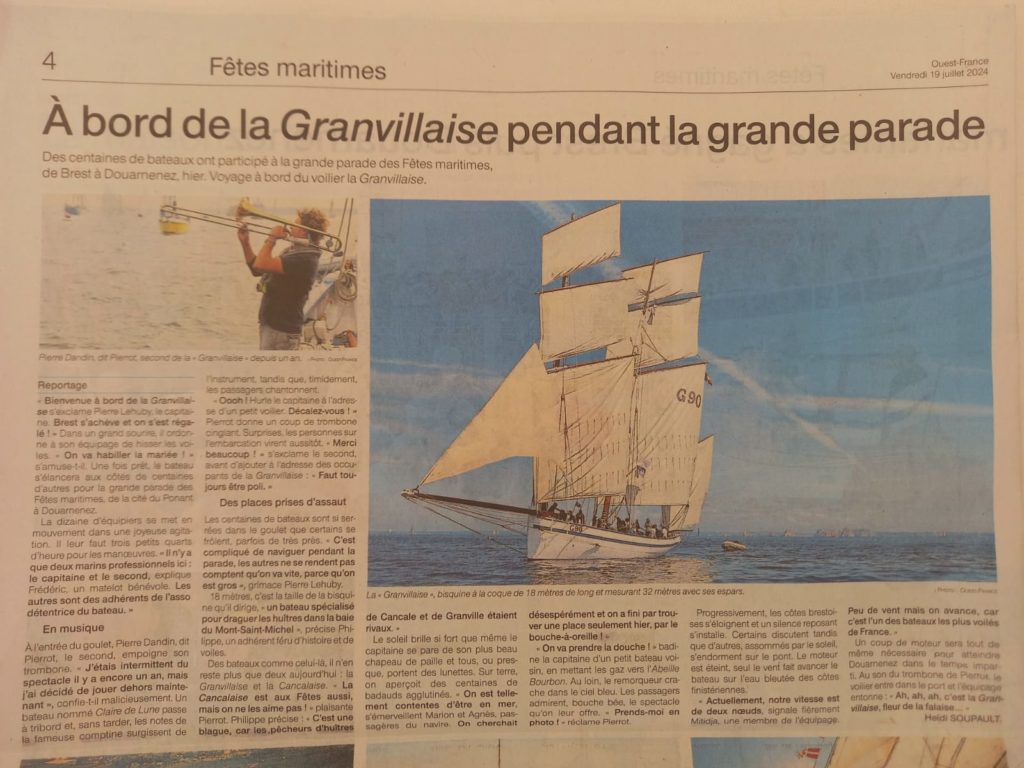 19 juillet : presse régionale fait un bel article sur La Granvillaise