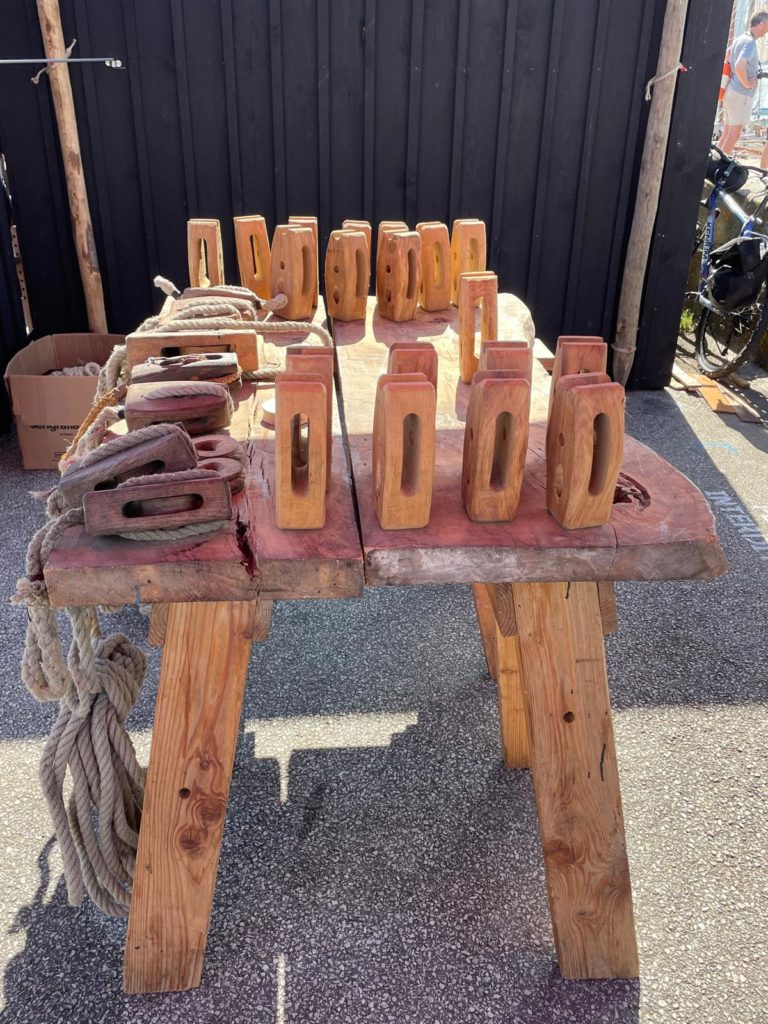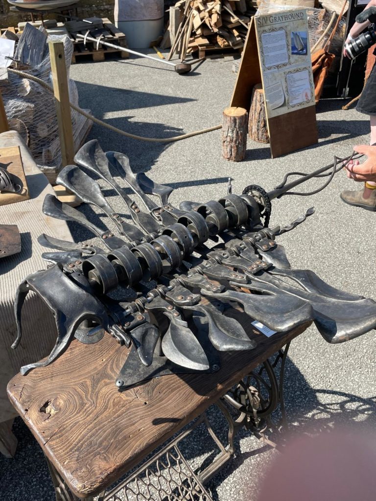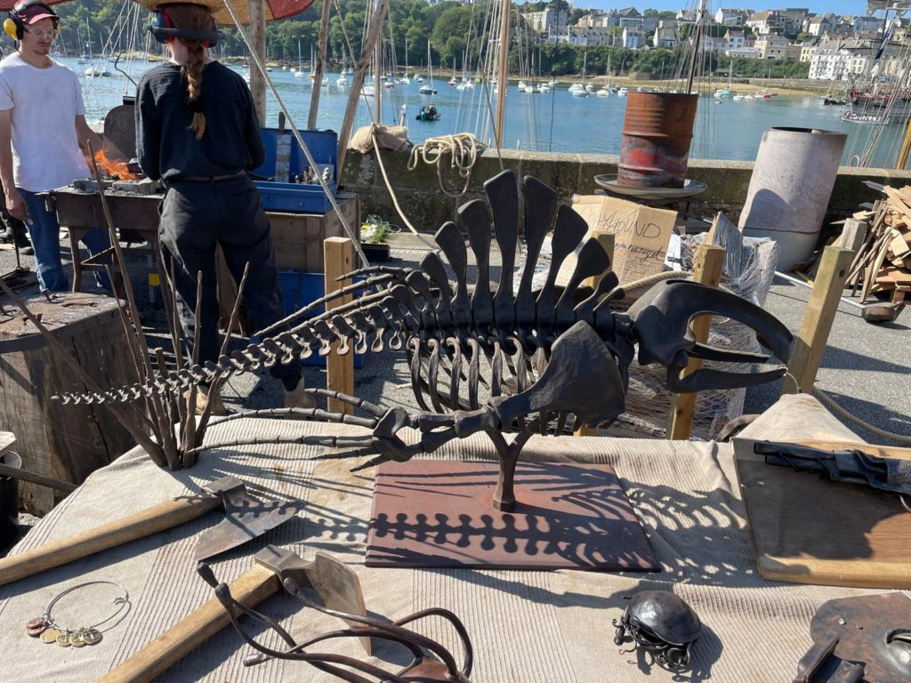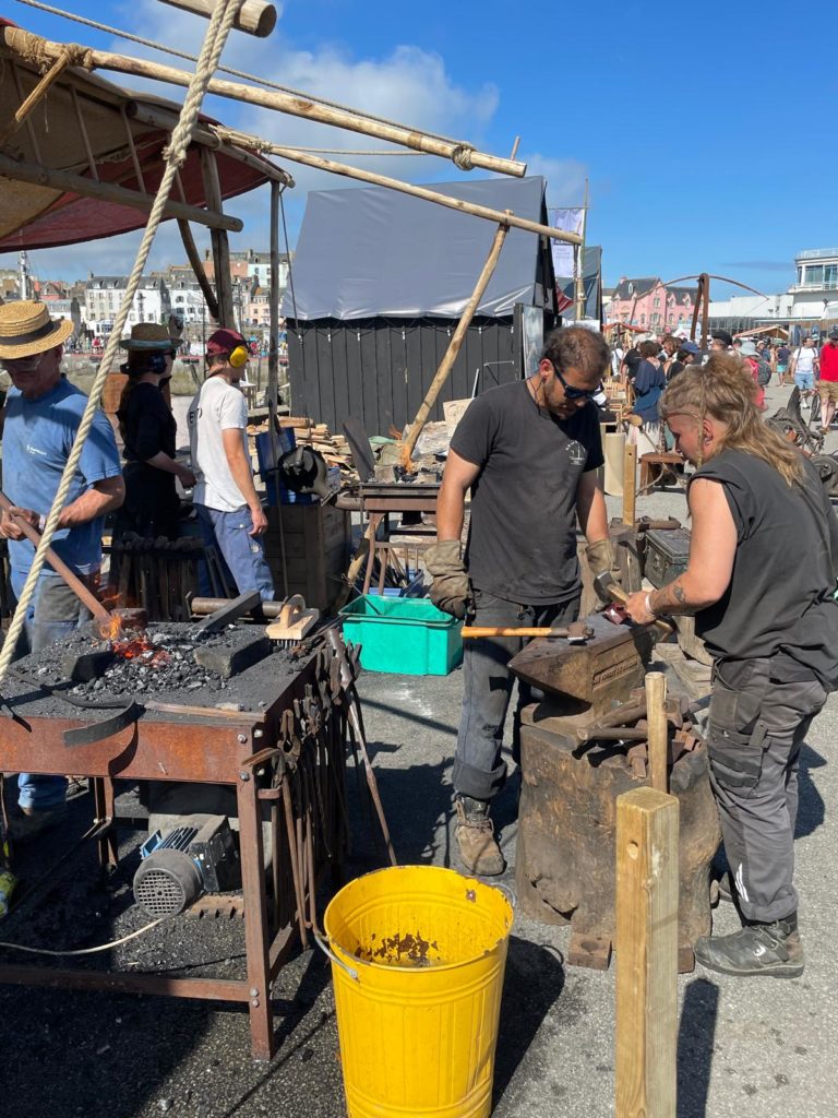 Animations avec le présentationde métiers traditionnels : poulies havraises, chaudronerie, tissage, sculpture, fumage de poissons, charpente marine, etc.