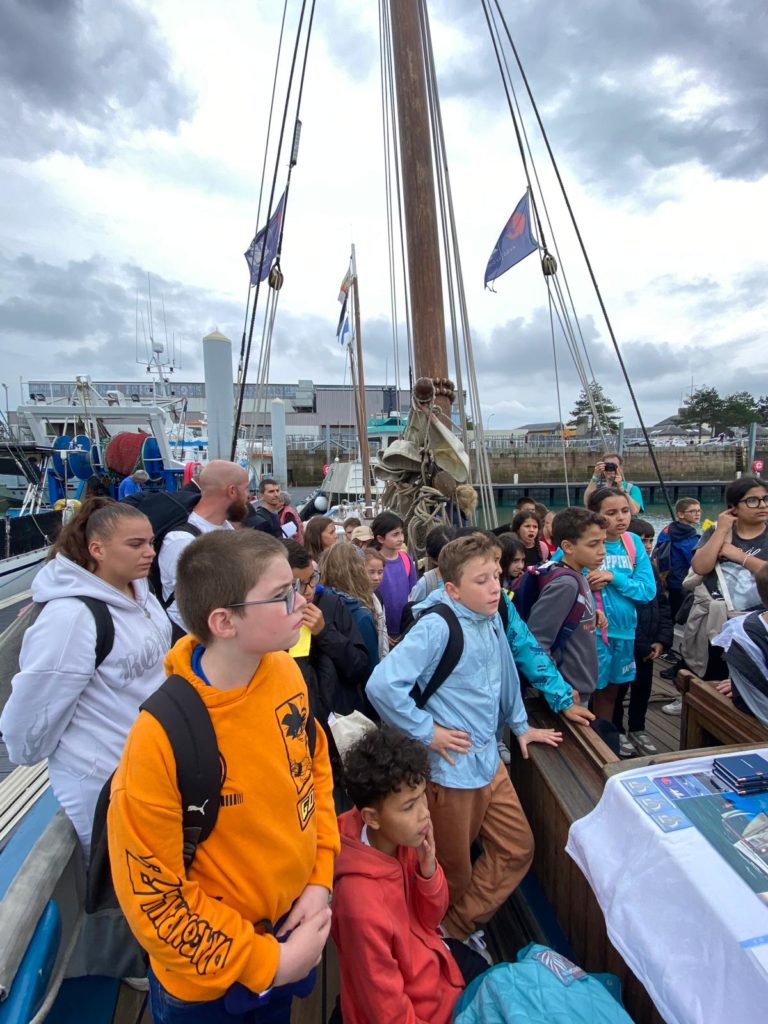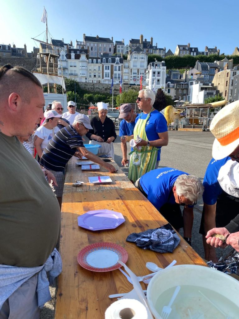 Plus de 60 personnes sont venus visiter La Granvillaise, plus deux classes des écoles Pompidou et Daum de Pont-A Mousson qui étaient en classe de mer à St Pair. Merci aux musiciens et mucicienne ! La petite boutique du bord a bien fonctionné.