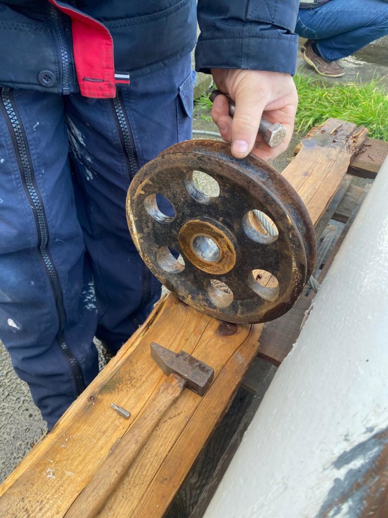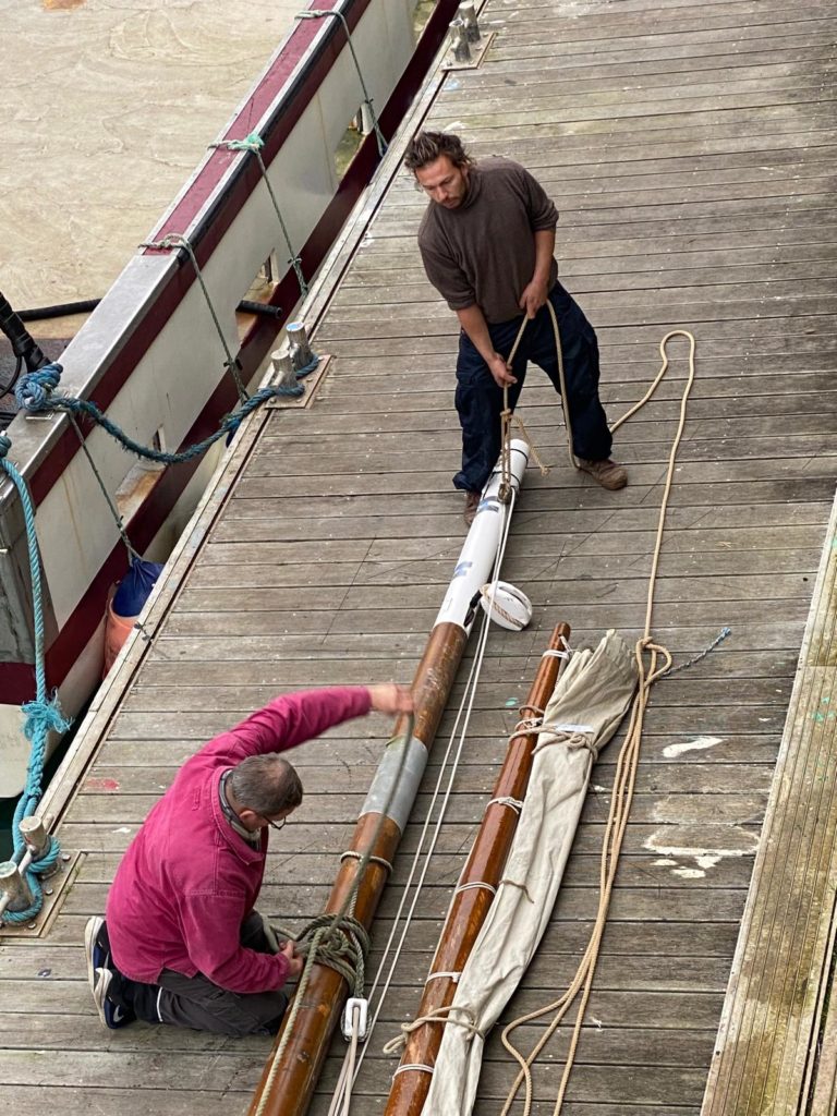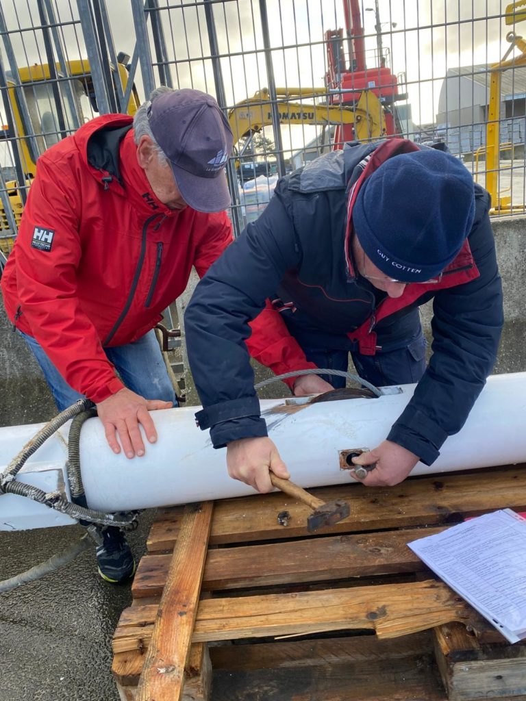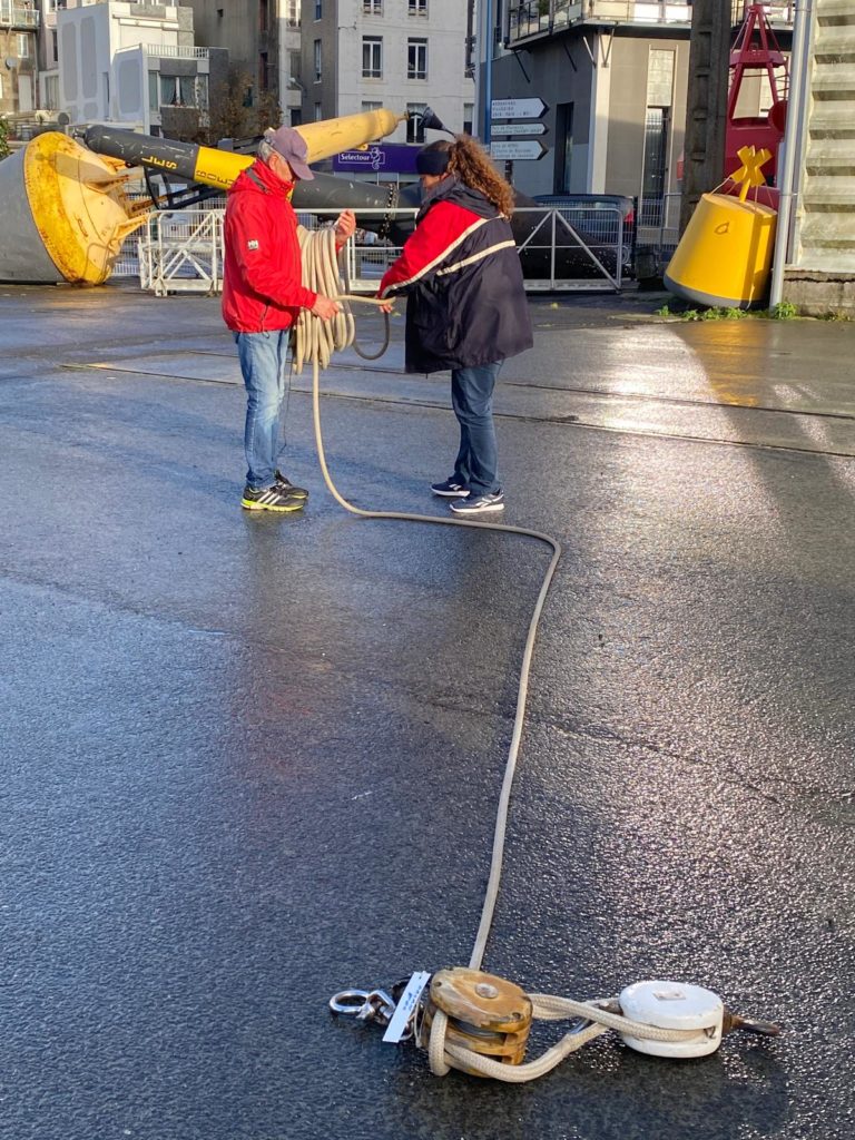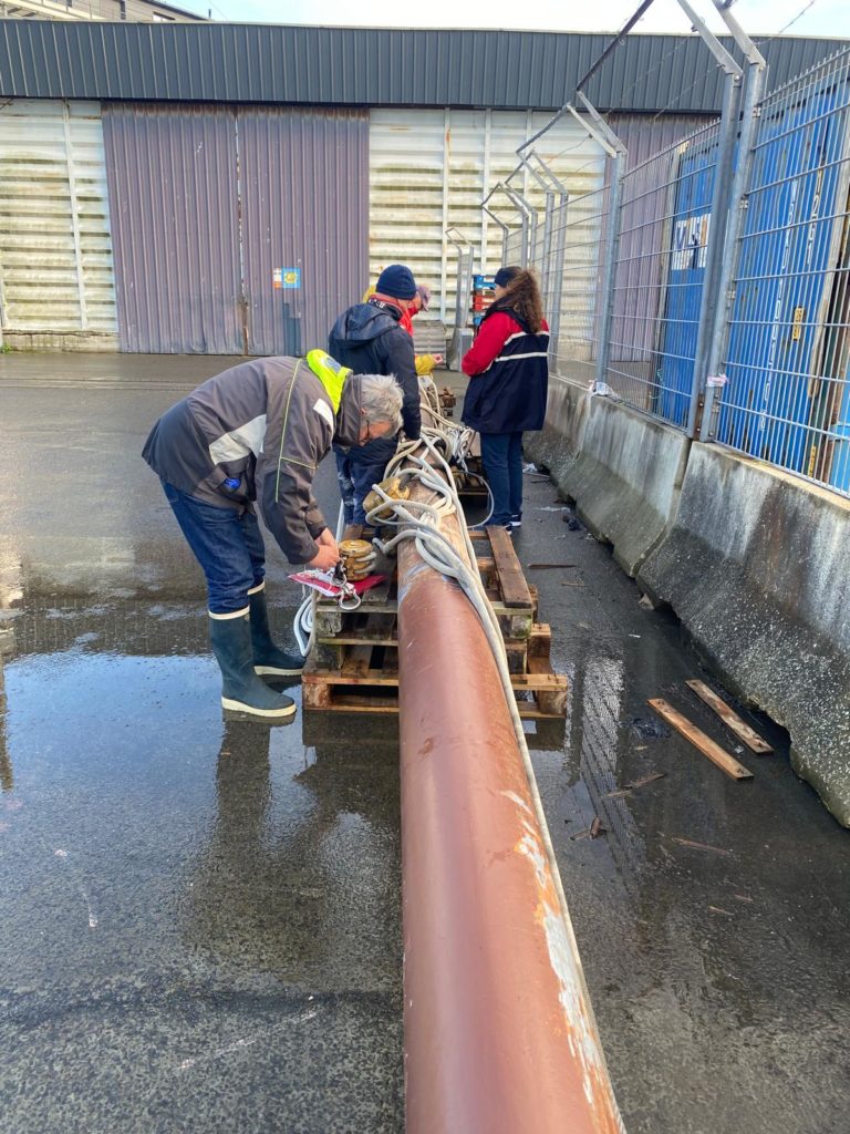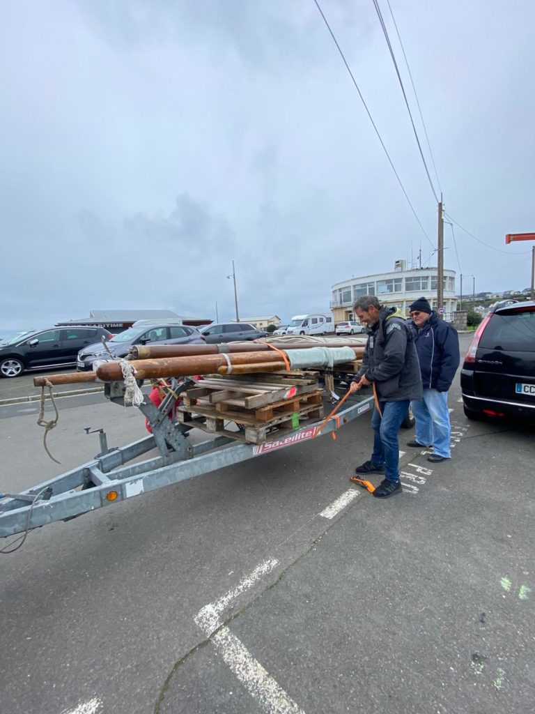 Le démâtage du mât de misaine a été retardé à cause des conditions météorologiques difficiles de la deuxième quinzaine de novembre. Plus de 10 bénévoles de l’association sont venus prêter main forte à l’opération. La grue de Gadel Levage n’a fait qu’une bouchée de cette tâche. Woodspars, le fabricant du nouveau mât va venir prendre les cotes dans la semaine.
