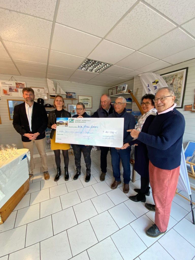 Le samedi 7 décembre, le Crédit Agricole a remis un chèque de 10000€ à l’association pour contribuer aux travaux de La Granvillaise. Ce mécénat s’inscrit dans la continuité des aides attribuées par la caisse locale de Granville et la caisse régionale du Crédit Agricole Normandie depuis de nombreuses années. La remise officielle a permis au bureau statutaire de remercier la délégation de la banque conduite par Christine Philippeau, présidente de la caisse de Granville.