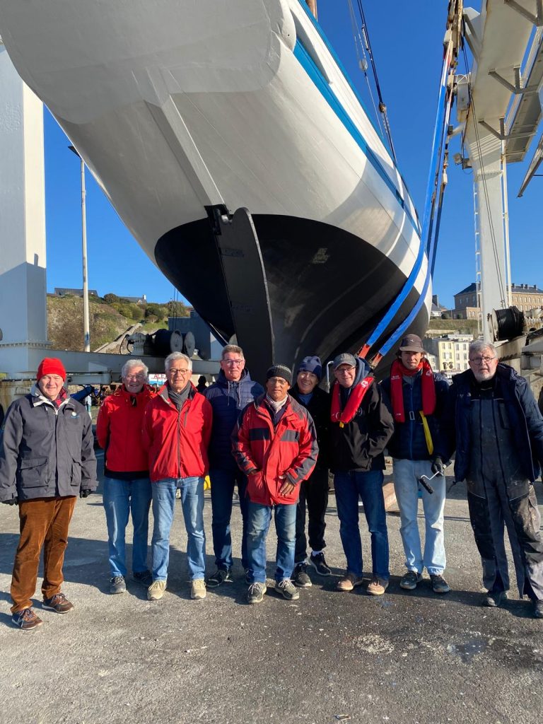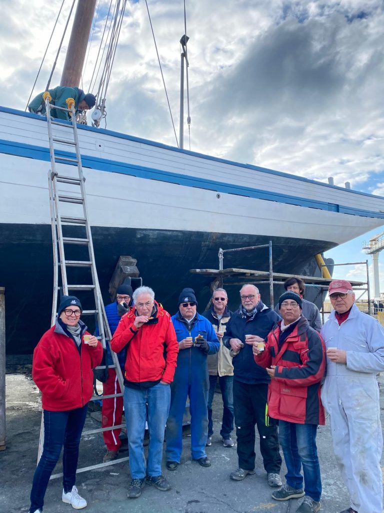 Remise à l’eau sous un soleil radieux dès le matin. Cap sur le réarmement prévu à partir du 28 mars. On attend avec impatience la livraison du mât de misaine à la fin du mois.