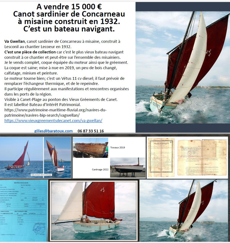 Jean-Paul Labrosse donne son Dauphin, construction du chantier Jézéquel de Carantec. Jean-Paul a sa place de port au Hérel. Le contacter directement : cokelunde@gmail.com